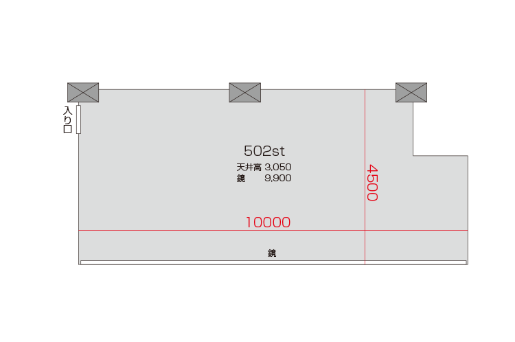 鏡面約10m!他スタジオと隣接せず1フロアに2スタジオのみ。広くお使いいただけます。