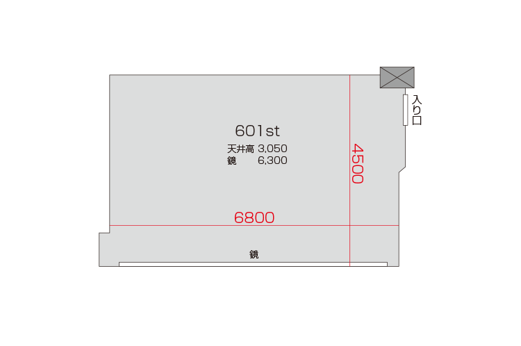 広さ 30.6㎡ 天井高 3m 鏡 6.3m