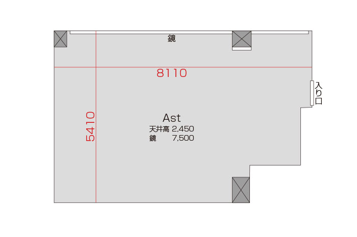 【広さ約45㎡/鏡面8m】レッスンにも最適な中型スタジオ✨