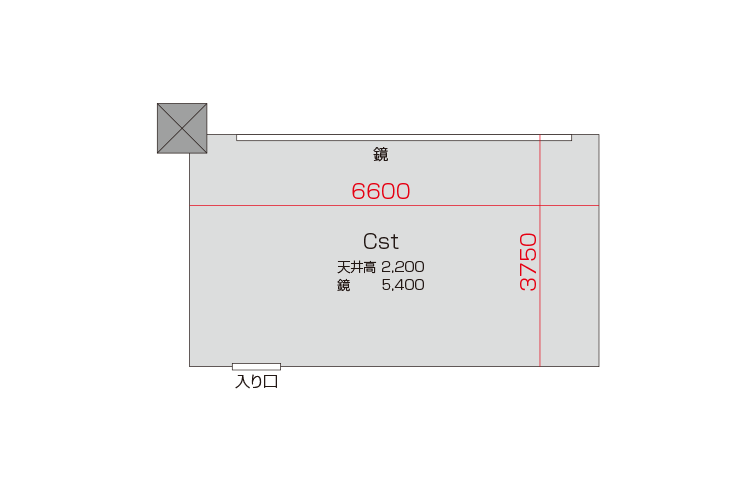 広さ 24.8㎡ 天井高 2m 鏡 5.5m