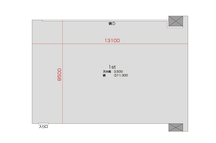 広さ 111.4㎡ 天井高 3.5m 鏡 11.3m