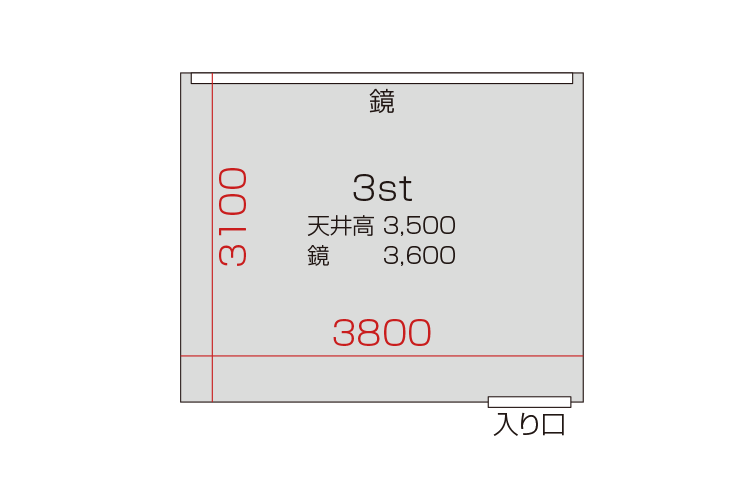 広さ 11.8㎡ 天井高 3.5m 鏡 3.6m