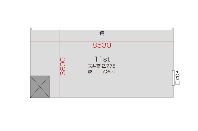 広さ 32.4㎡ 天井高 2.77m 鏡 7.2m