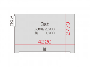 広さ 12.5㎡ 天井高 2.5m 鏡 3.6m