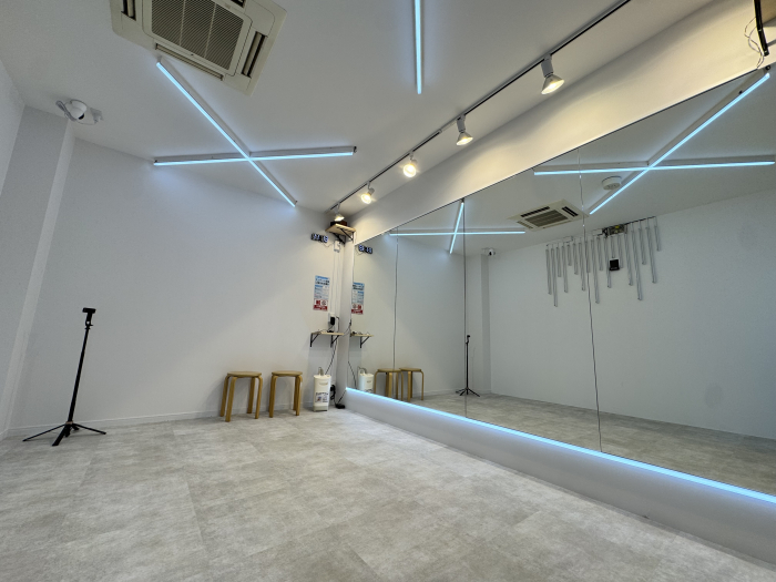スタジオの入口前で靴を脱いでいただき、電気を点けてお使いください。受付での手続きなどは一切ございません。