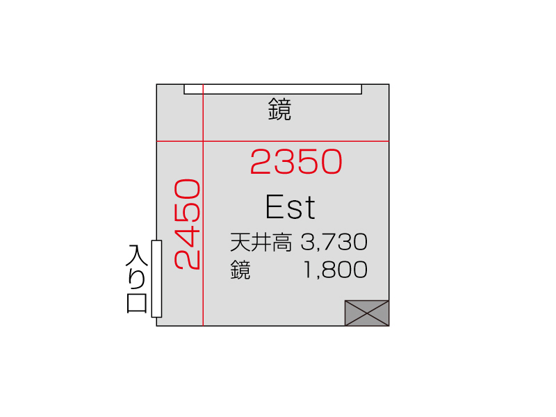 広さ 5.6㎡ 天井高 3.73m 鏡 1.8m