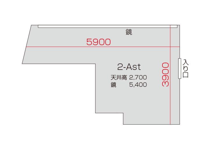 広さ 16.0㎡ 天井高 2.7m 鏡 5.4m