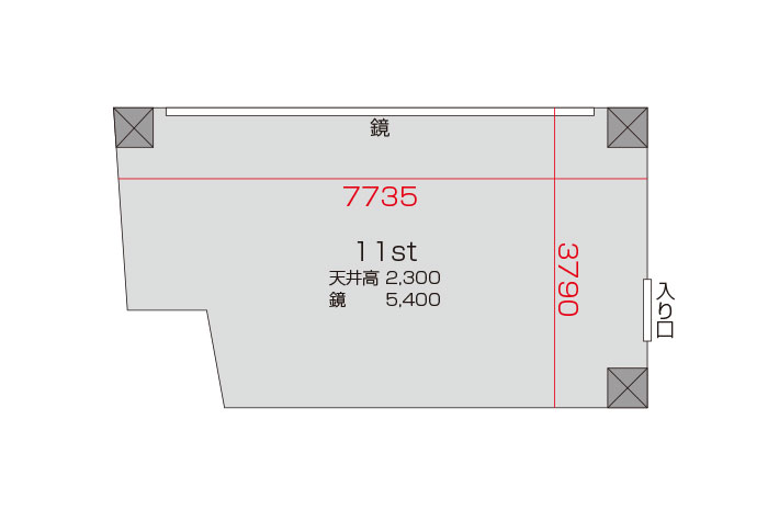 【ストリート風内装デザイン】 トタン風壁×LEDライトバーで、 あらたな「ストリート風」のデザインのスタジオが誕生! コンセプトに合わせたこだわりのダンス動画が撮影してみませんか? 明るい状態・LEDのみの状態、其々また違った雰囲気で楽しむことができます♪ 10~15名での利用可 レッスンにおすすめの中型スタジオです!