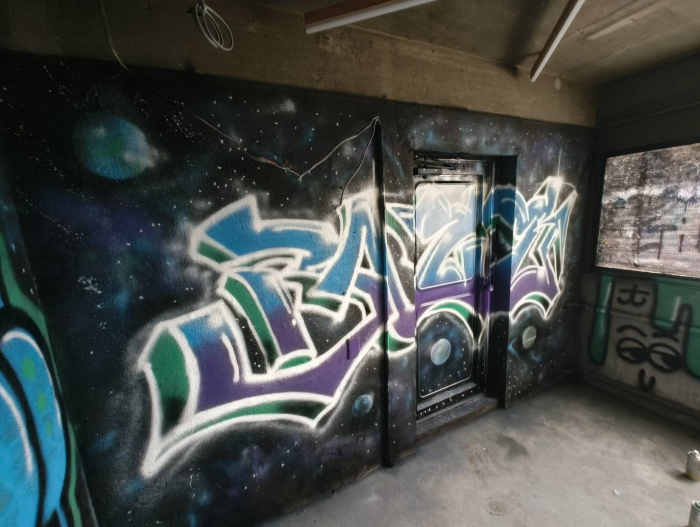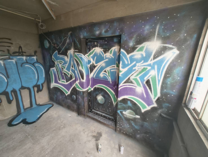 宇宙モチーフのグラフィティが放つ独特な空気感。