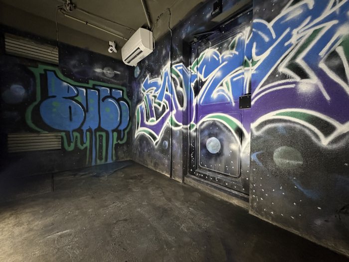 宇宙モチーフのグラフィティが放つ独特な空気感。