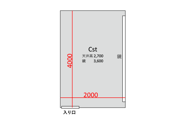 広さ 8.0㎡ 天井高 2.7m 鏡 3.6m