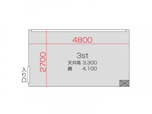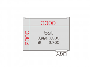広さ 24.0㎡ 天井高 3.3m 鏡 3.6m