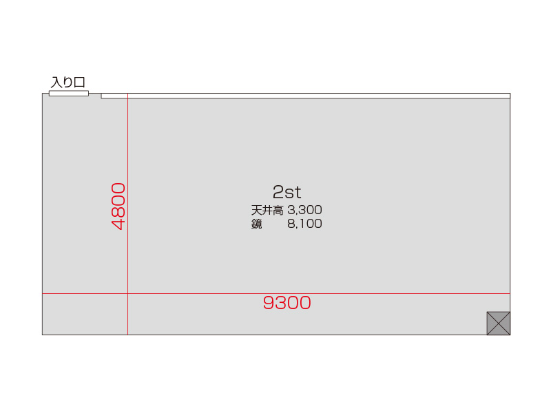 広さ 48.6㎡ 天井高 3.3m 鏡 7.8m