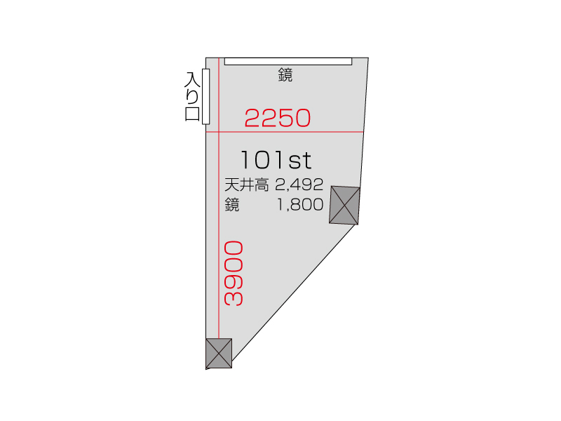 広さ 7.2㎡ 天井高 2.492m 鏡 1.8m