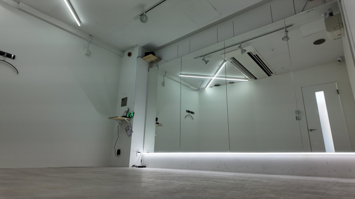 スタジオの入口前で靴を脱いでいただき、電気を点けてお使いください。受付での手続きなどは一切ございません。