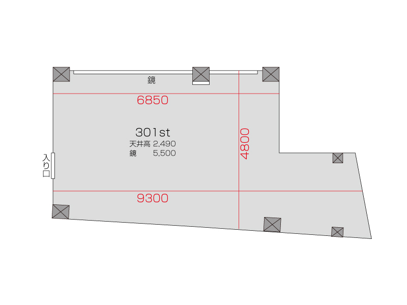 広さ 37.7㎡ 天井高 2.49m 鏡 5.5m