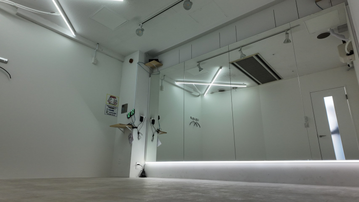 スタジオの入口前で靴を脱いでいただき、電気を点けてお使いください。受付での手続きなどは一切ございません。