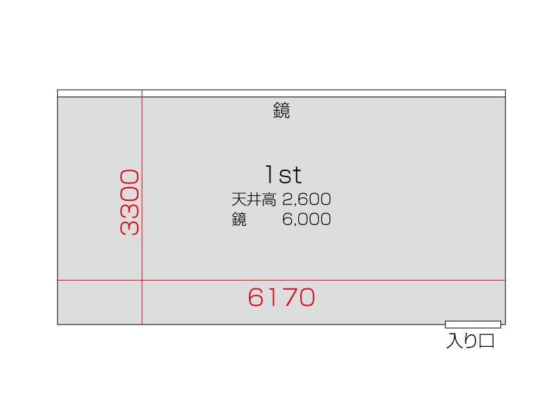 広さ 22.8㎡ 天井高 2.6m 鏡 6.0m