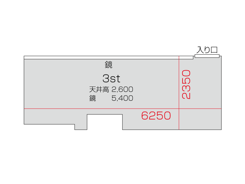 広さ 15.3㎡ 天井高 2.6m 鏡 5.4m