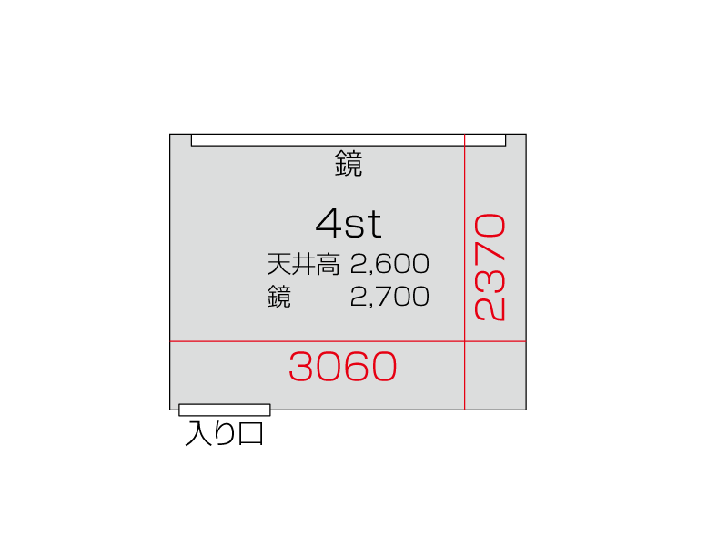 広さ 6.5㎡ 天井高 2.6m 鏡 2.7m