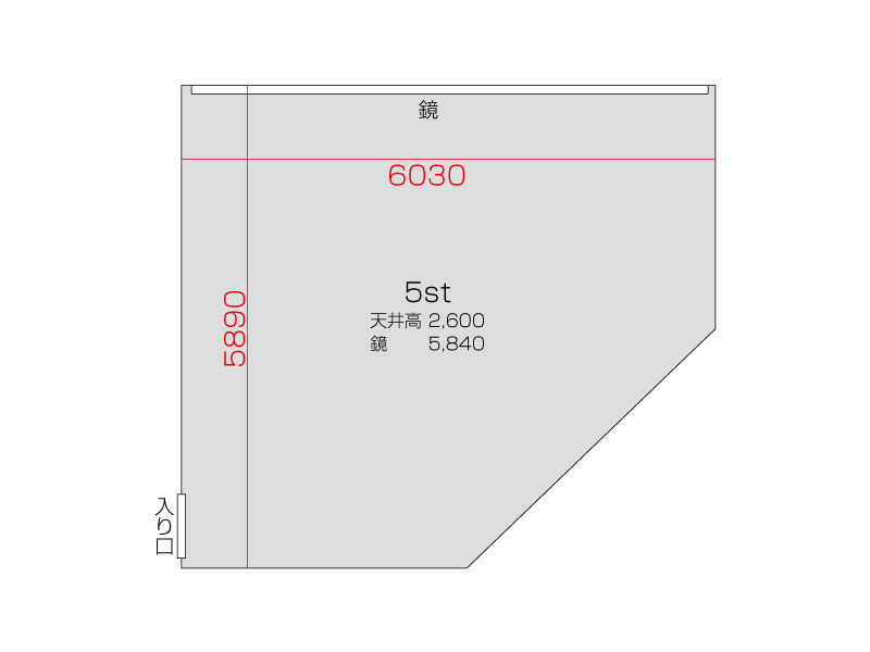 広さ 32.0㎡ 天井高 2.6m 鏡 5.8m