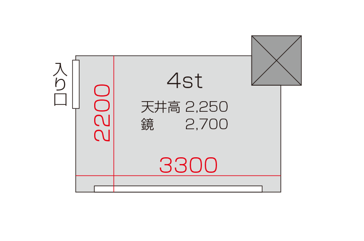 スタジオの入口前で靴を脱いでいただき、電気を点けてお使いください。受付での手続きなどは一切ございません。