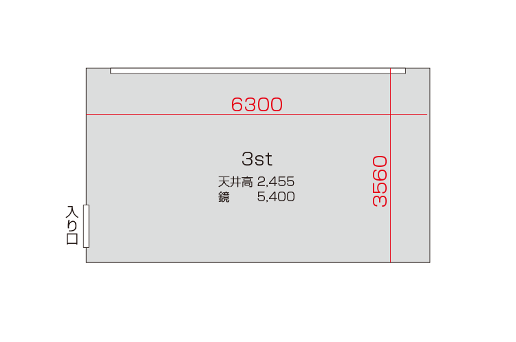 広さ 22.4㎡ 天井高 2.4m 鏡 5.4m