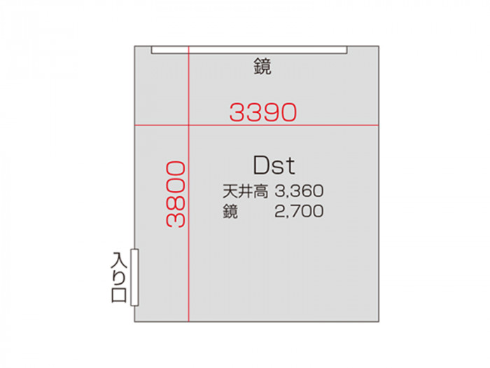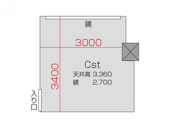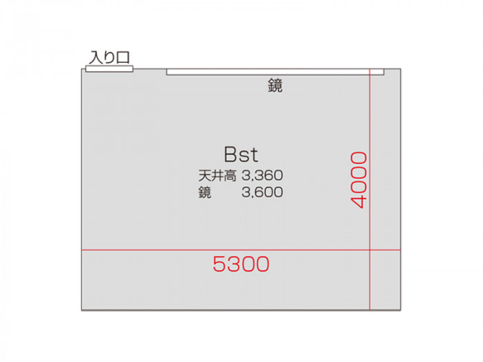 広さ 30.3m | 天井高 2.5m | 鏡 5.4m