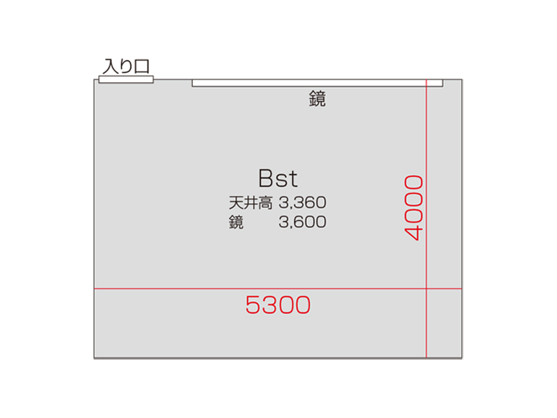 広さ 23.2㎡ 天井高 2.5m 鏡 3.6m
