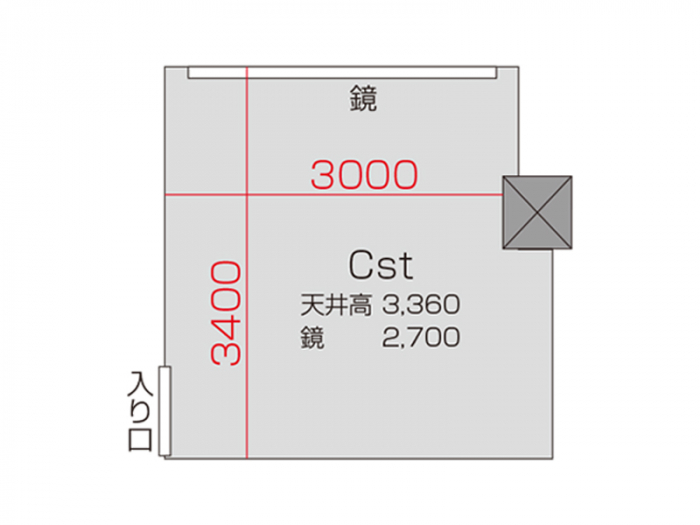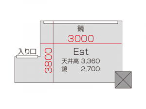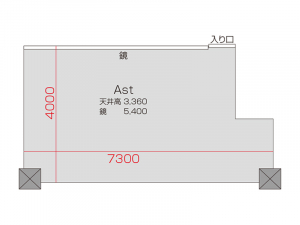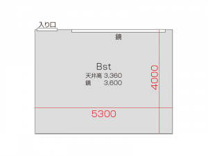 広さ 23.2㎡ 天井高 2.5m 鏡 3.6m