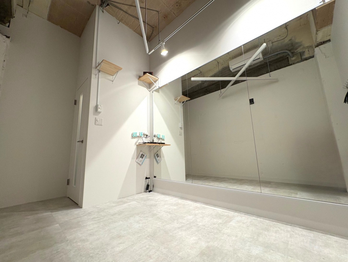 スタジオの入口前で靴を脱いでいただき、電気を点けてお使いください。受付での手続きなどは一切ございません。