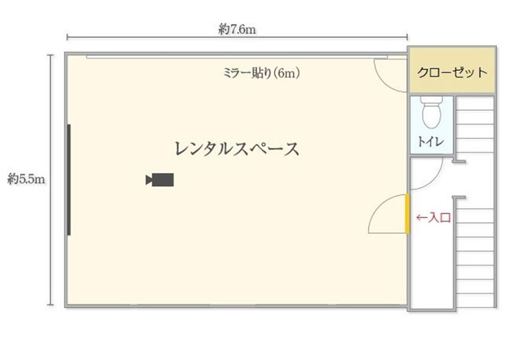 更衣室完備 調光利用 楽器利用可 バレエバー リノリウム プロジェクター ホワイトボード 長机 折りたたみイス ヨガマットレンタル スマホスタンド