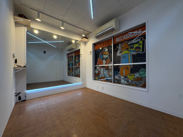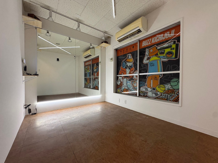 スタジオの入口前で靴を脱いでいただき、電気を点けてお使いください。受付での手続きなどは一切ございません。