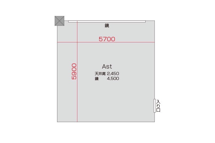 広さ 31.6㎡ 天井高 2.5m 鏡 4.5m