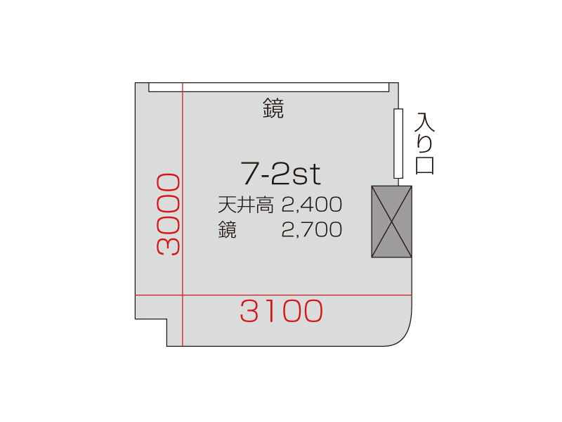 広さ 7.2㎡ 天井高 2.4m 鏡 2.7m
