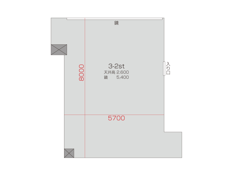広さ 46.0㎡ 天井高 2.6m 鏡 5.4m