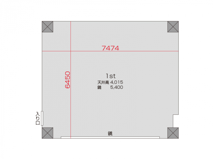 スタジオの入口前で靴を脱いでいただき、電気を点けてお使いください。受付での手続きなどは一切ございません。