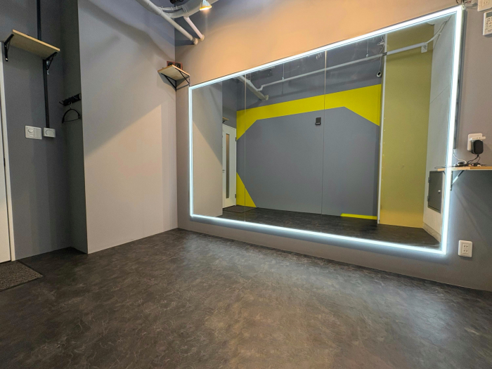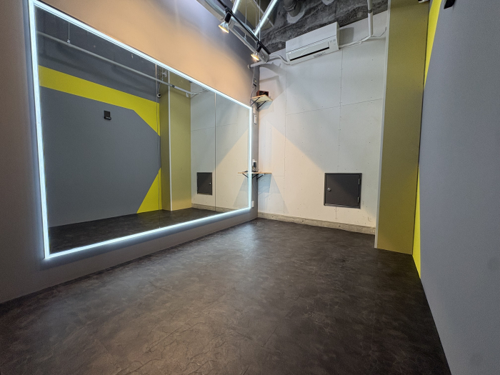 スタジオの入口前で靴を脱いでいただき、電気を点けてお使いください。受付での手続きなどは一切ございません。
