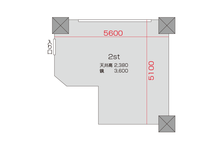 広さ 24.0㎡ 天井高 2.38m 鏡 3.6m