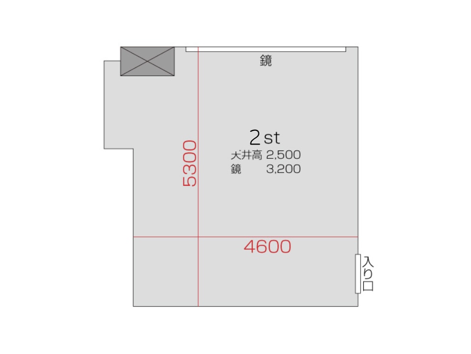 広さ 25.0㎡ 天井高 2.5m 鏡 3.2m