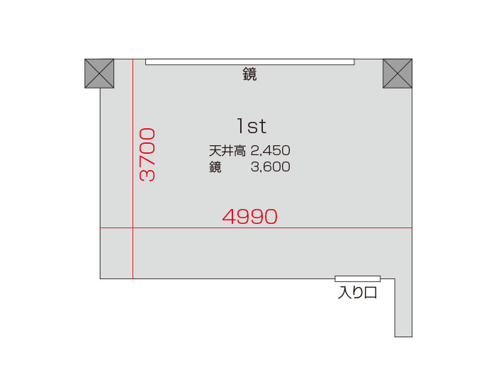 広さ 18.5㎡ 天井高 2.45m 鏡 3.6m