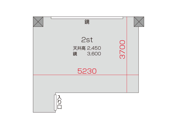 スタジオの入口前で靴を脱いでいただき、電気を点けてお使いください。受付での手続きなどは一切ございません。