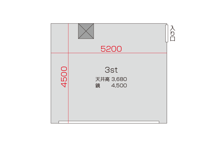 広さ 23.4㎡ 天井高 3.7m 鏡 5.0m