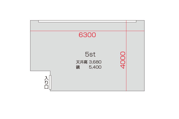 広さ 25.0㎡ 天井高 3.7m 鏡 6.0m