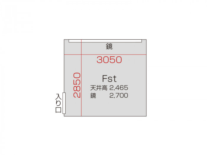 広さ 9.7m | 天井高 2.4m | 鏡 2.7m