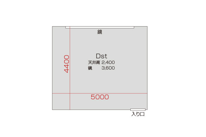 広さ 22.0㎡ 天井高 2.4m 鏡 3.6m