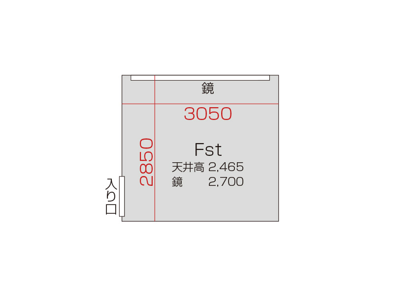 広さ 9.7㎡ 天井高 2.4m 鏡 2.7m